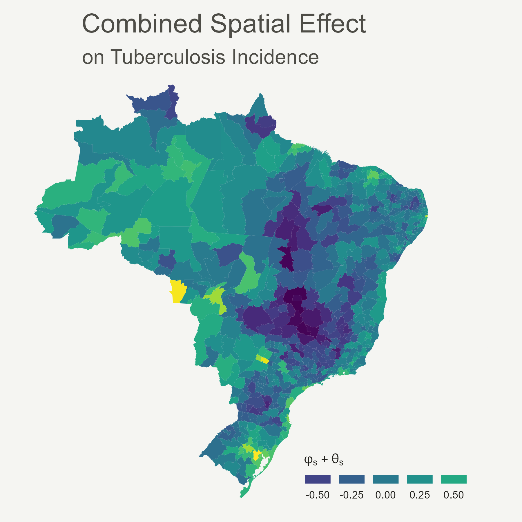 An ICAR1 model was assumed for the structured spatial effect \(\phi_s\) with variance \(\nu^2\).
